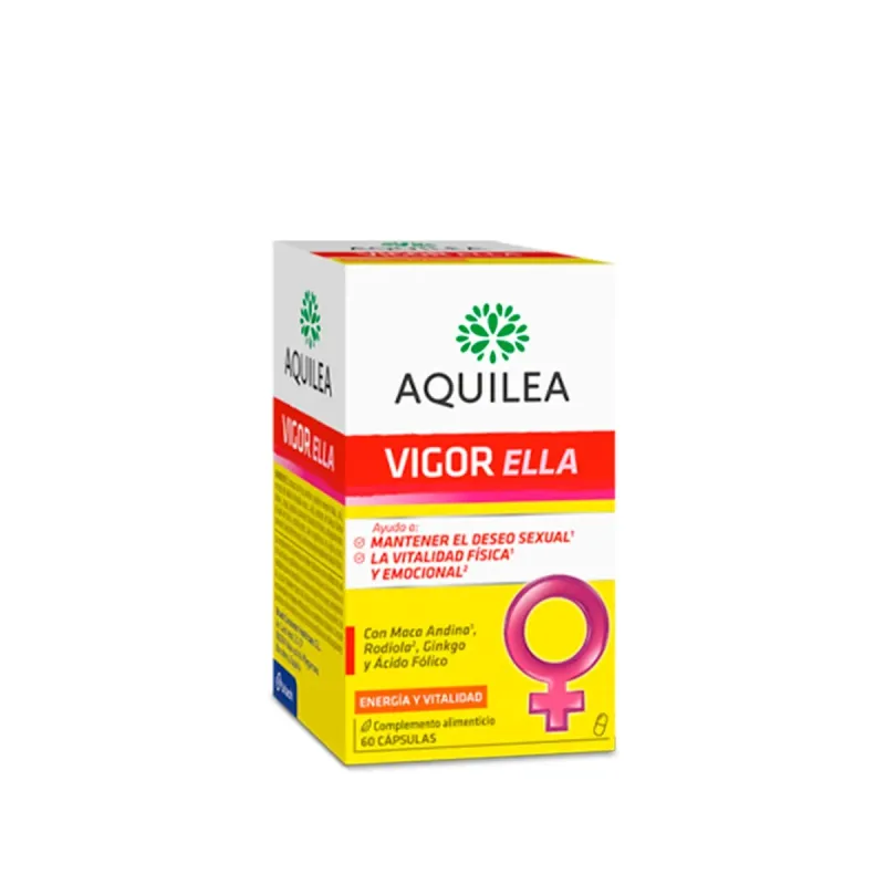 Aquilea Vigor Ella es un suplemento alimenticio que proporciona vitalidad tanto física como mental a la mujer, contribuyendo a la mejora de su vida sexual. Este producto se compone de ingredientes como Maca andina, Rodiola, Ginkgo y Ácido fólico los cuales se han seleccionado por sus propiedades y beneficios.