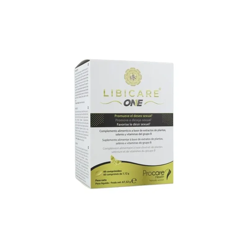 Libicare One se presenta en una caja que incluye 60 comprimidos, una cantidad sugerida como suficiente para dos meses de uso.