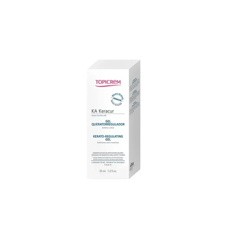 Topicrem KA Keracur gel queratorregulador es un producto de Mayoly Spindler ideado para el cuidado y protección de la piel que ha estado expuesta a una intensa radiación solar, específicamente sobre zonas de la piel y cuero cabelludo con hiperqueratosis. Este gel tiene como finalidad calmar la sensación de picor y coadyuvar en la eliminación de la capa córnea de la piel.