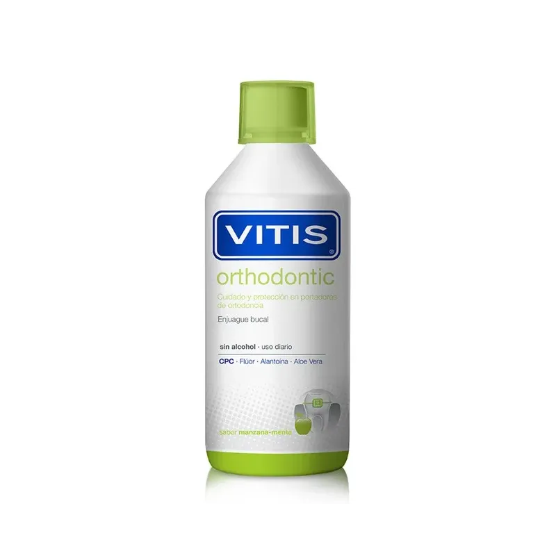 El enjuague Vitis Orthodontic es un producto de higiene bucal que ha sido minuciosamente preparado para personas que llevan ortodoncia, aunque es apto para todos los usuarios. Este colutorio tiene componentes como el cloruro de cetilpiridinio (CPC) y el fluoruro sódico que poseen cualidades antisépticas y remineralizantes, ayudando así a mantener una higiene bucal adecuada.