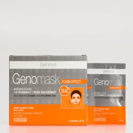 Genomask Flash Effect proviene de los Laboratorios Genové y se presenta en una caja que contiene 6 sobres individuales para 6 aplicaciones en total.