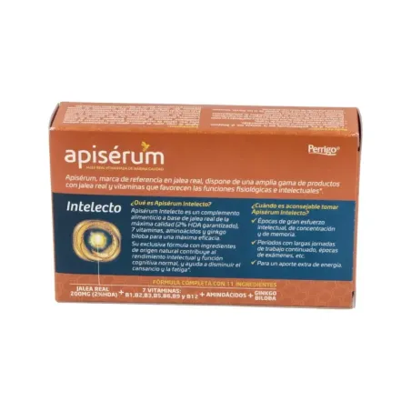 Apiserum Intelecto es un suplemento nutricional con componente principal de jalea real, complementado por 7 vitaminas del complejo B y aminoácidos. Aunque no puede prevenir el envejecimiento, está diseñado para respaldar y fortalecer la función cognitiva para ayudar a retrasar los problemas cognitivos.