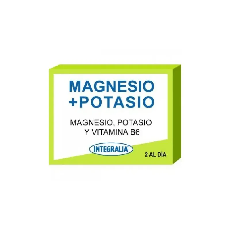 Integralia Magnesio y Potasio, 60 cápsulas, es un complemento alimenticio que favorece el correcto funcionamiento de músculos y nervios, y ayuda a reducir la fatiga.