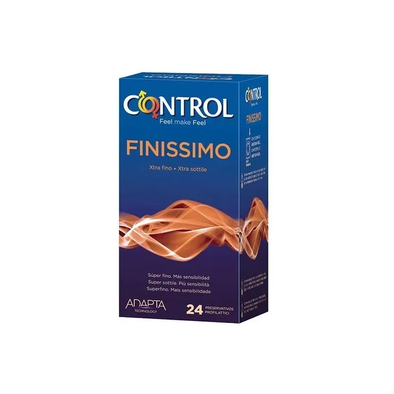 Control Finissimo es un preservativo de alta calidad, diseñado con un grosor extra-fino, lo que permite una mayor sensibilidad durante las relaciones. Su diseño ergonómico favorece una adaptabilidad superior y el hecho de estar lubricado potencia las sensaciones. Está compuesto por látex de caucho y dispone de un depósito.