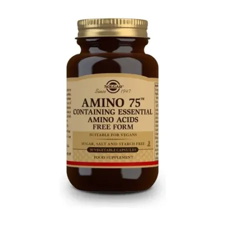 Solgar Amino es un suplemento alimenticio que tiene como principal función apoyar la correcta síntesis de proteínas y promover la producción de energía en el organismo. Este suplemento incluye 7 aminoácidos esenciales que ayudan en el correcto desarrollo muscular y facilitan la absorción de calcio.