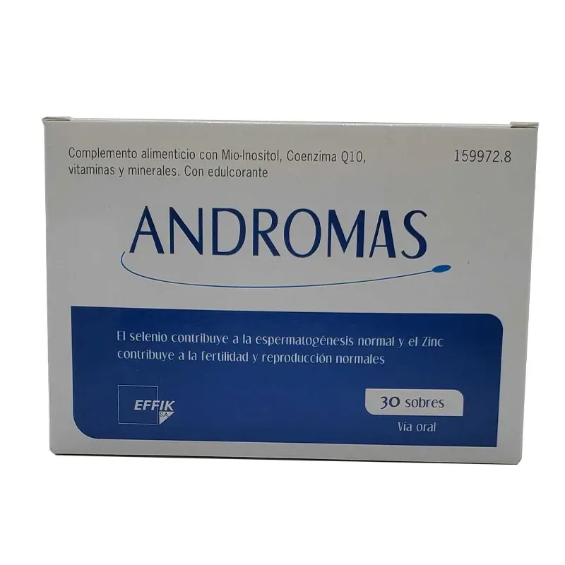 Andromas es un complemento alimenticio que incluye en su composición vitaminas, minerales, antioxidantes y ácidos grasos, todos ellos implicados en la formación de espermatozoides.